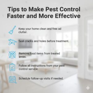 Sprays for ants, cockroaches, or spiders usually take 1–2 hours. Some follow-up may be needed after a few days. Cleaning and removing clutter beforehand can make the treatment faster and more effective.